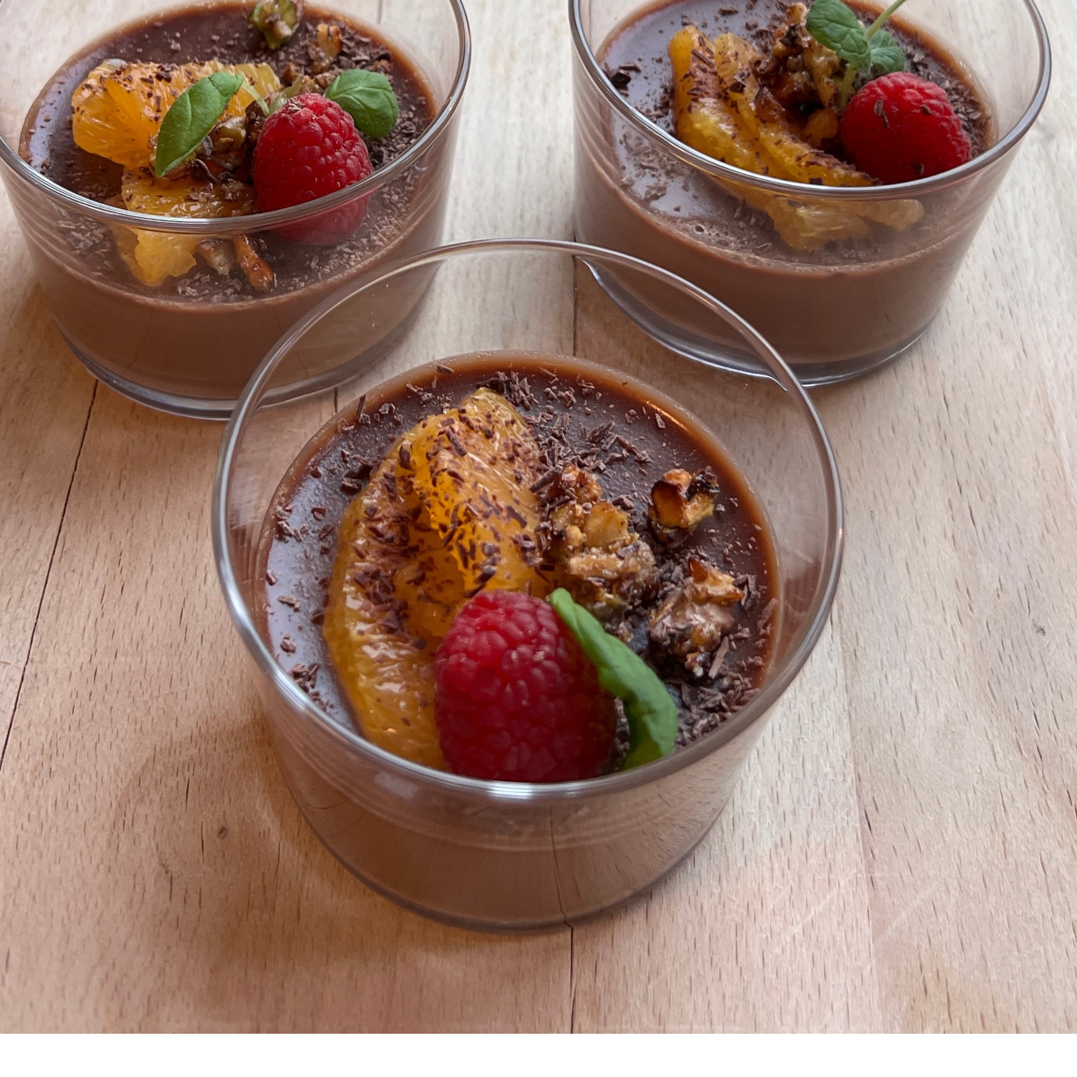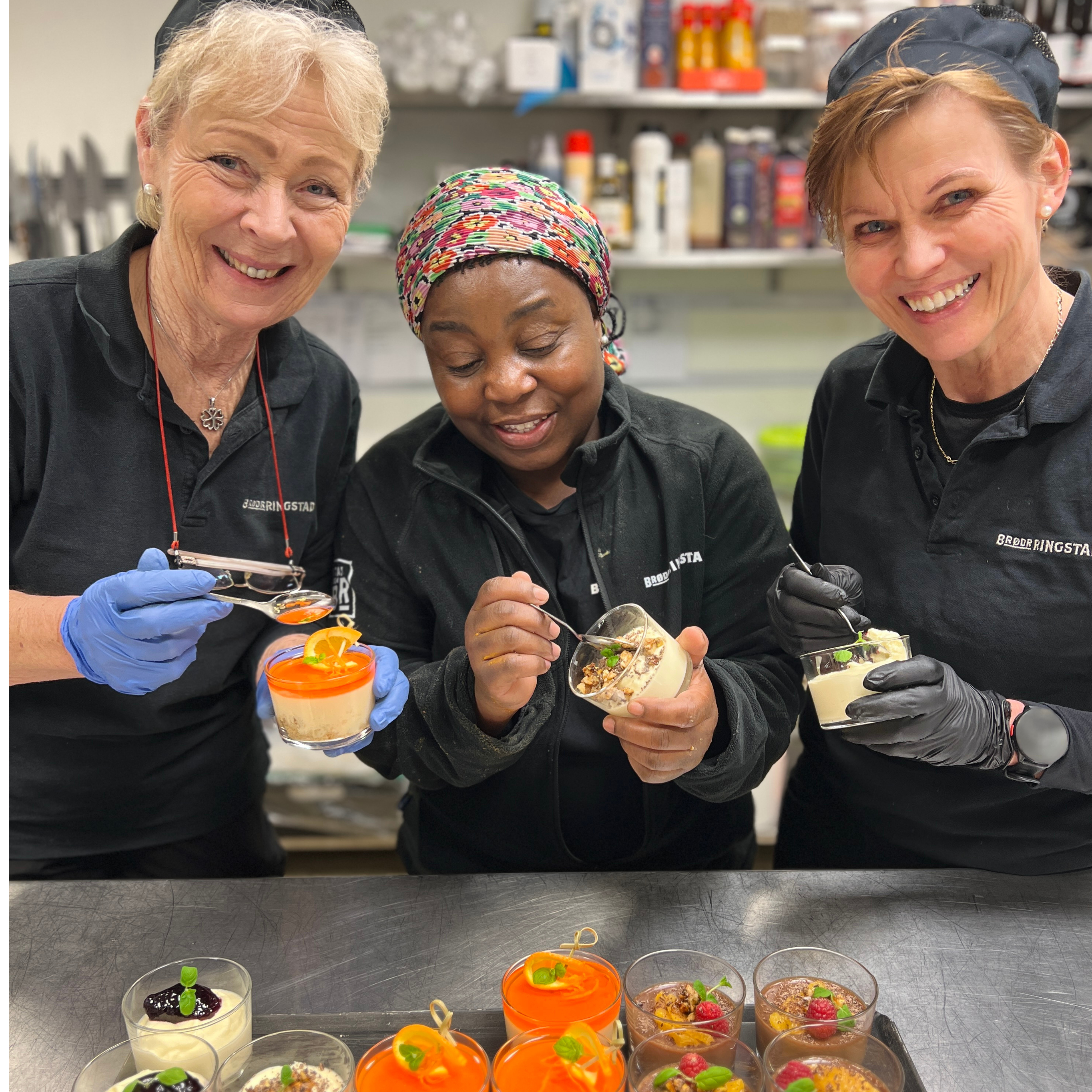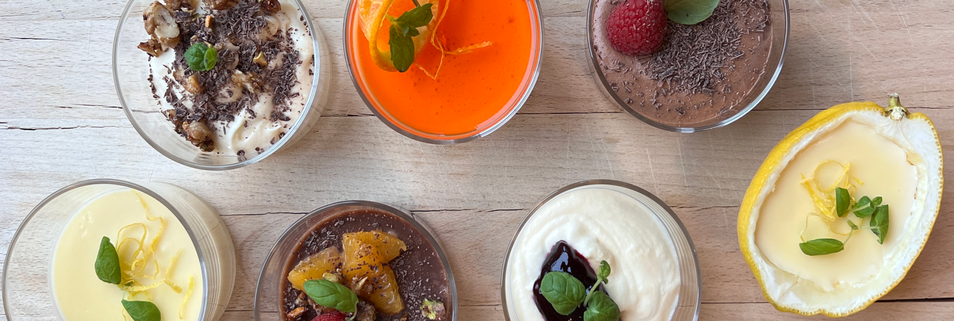 Dessertene leveres i delikate skåler, klare for servering. Det meste lager vi selv fra bunnen av.