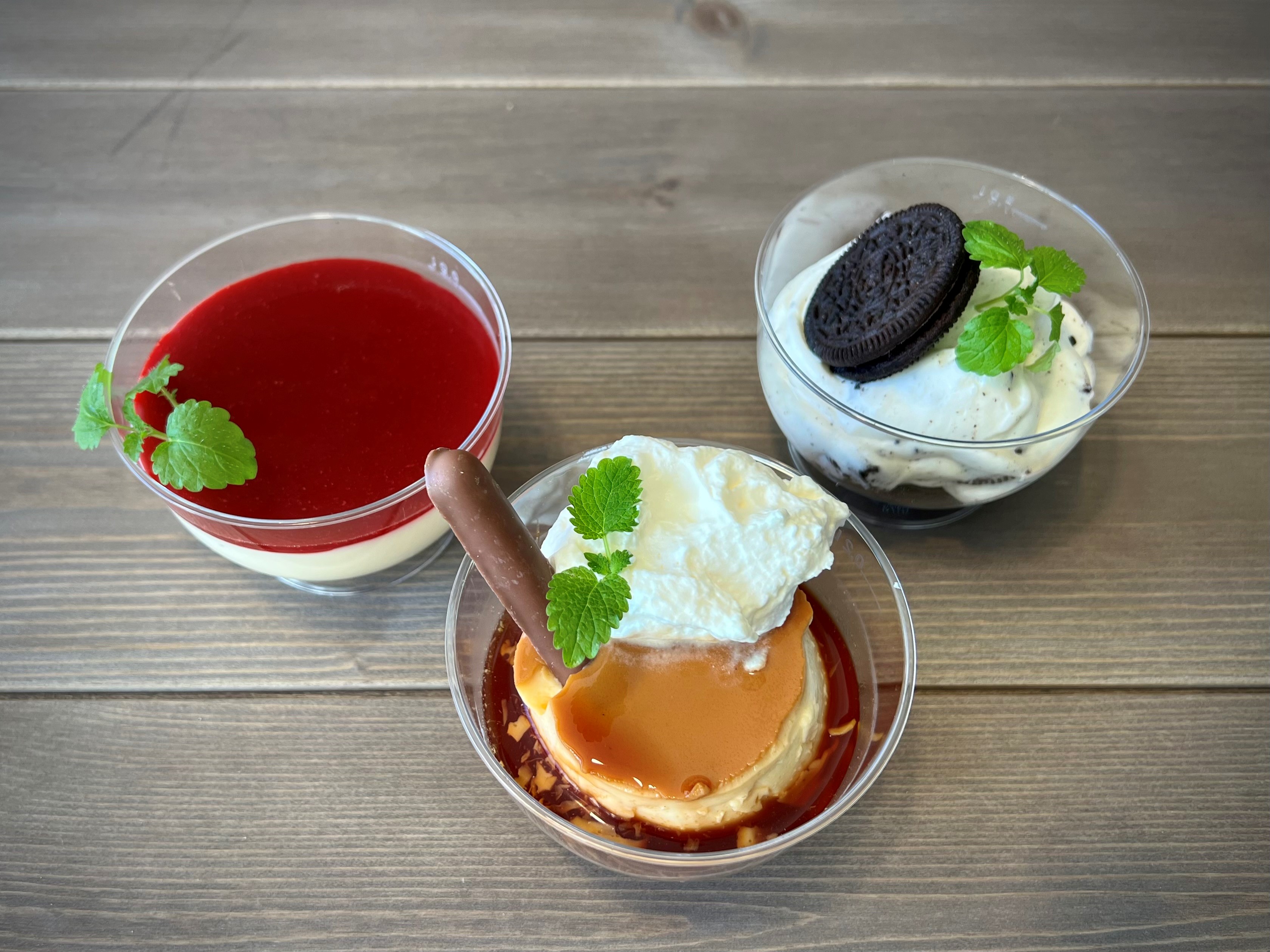 Dessertene leveres i porsjonsskåler, klare for servering.