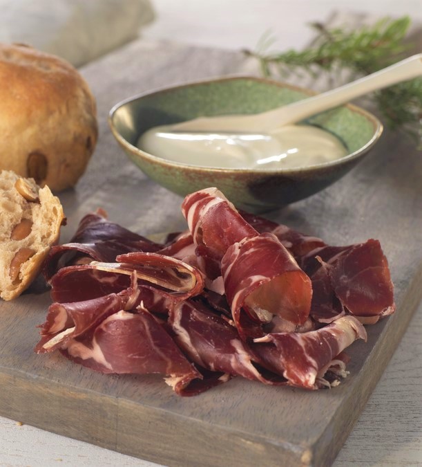 Kjøttet saltes, tørkes og modnes over tid for å oppnå den karakteristiske smaken.