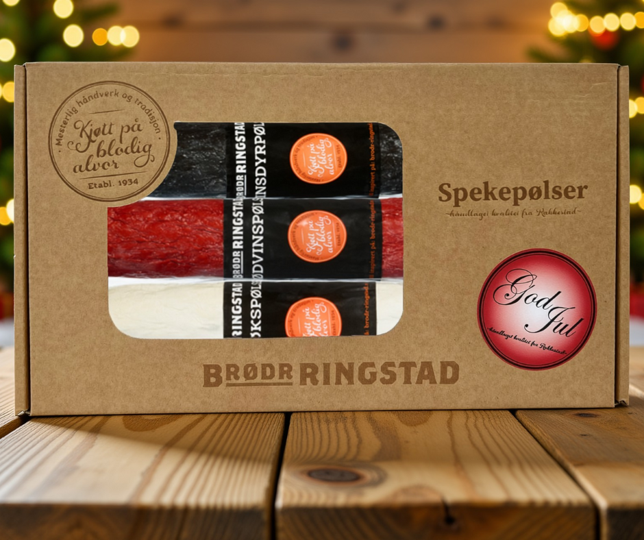 260 gram med Rødvinspølse, Hvitløkspølse og Reinsdyrpølse.