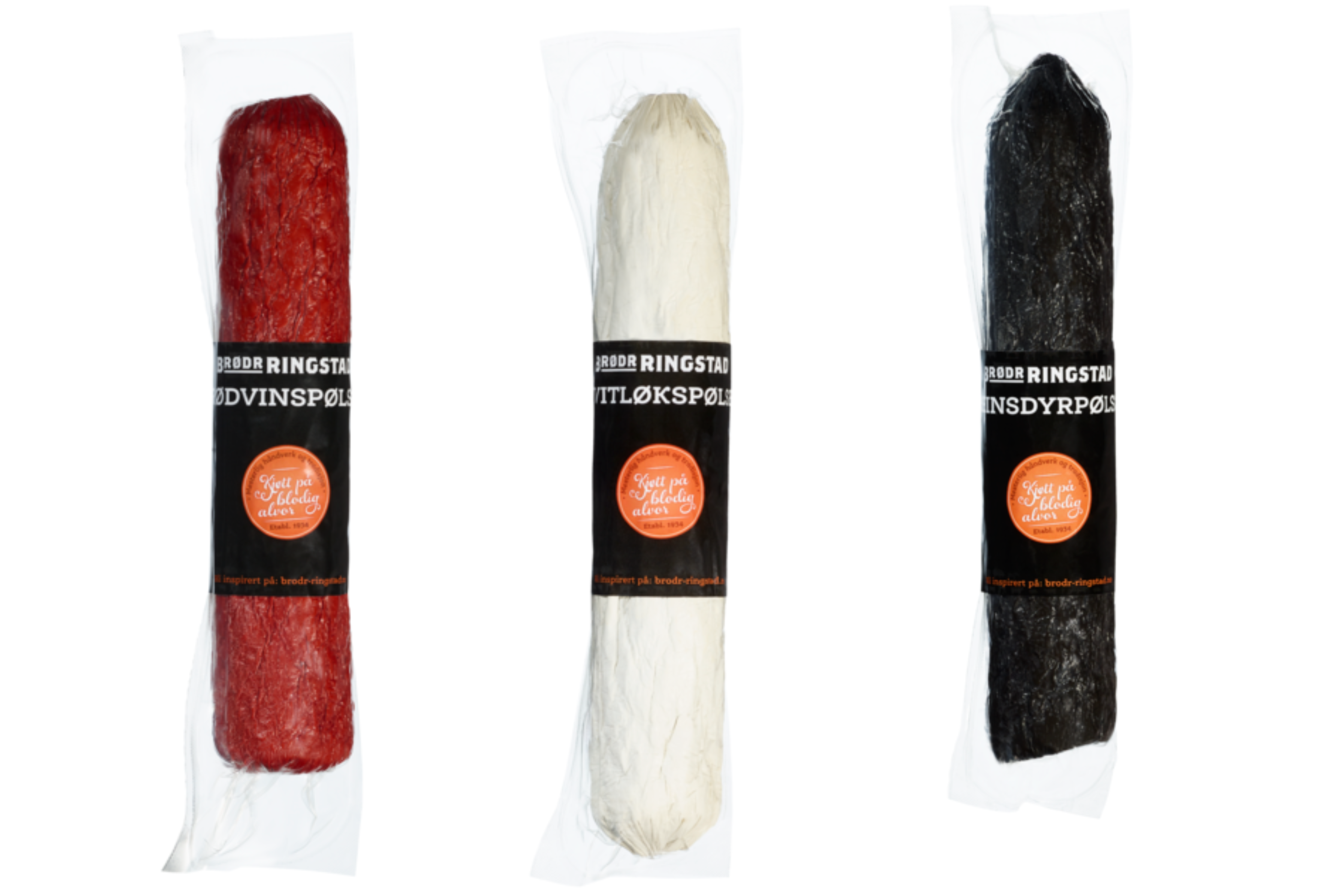Klassikeren rødvinspølse. Mild og smaksrik hvitløkspølse. Sist men ikke minst reinsdyrpølse med god viltsmak.