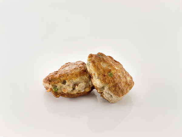 Ingredienser: kjøtt av svin og storfe (56%), vann, stivelse (tapioka, potet), gulrot, mais, erter, melkeprotein, salt, laktose, krydder.