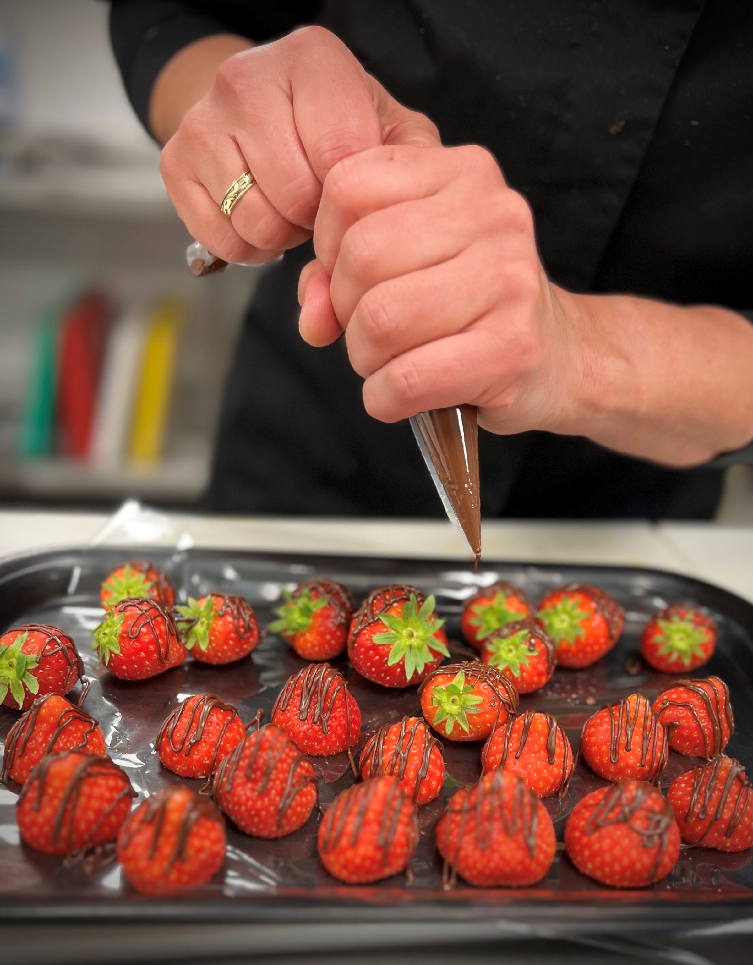 Dessertene leveres i delikate skåler, klare for servering. Det meste lager vi selv fra bunnen av.