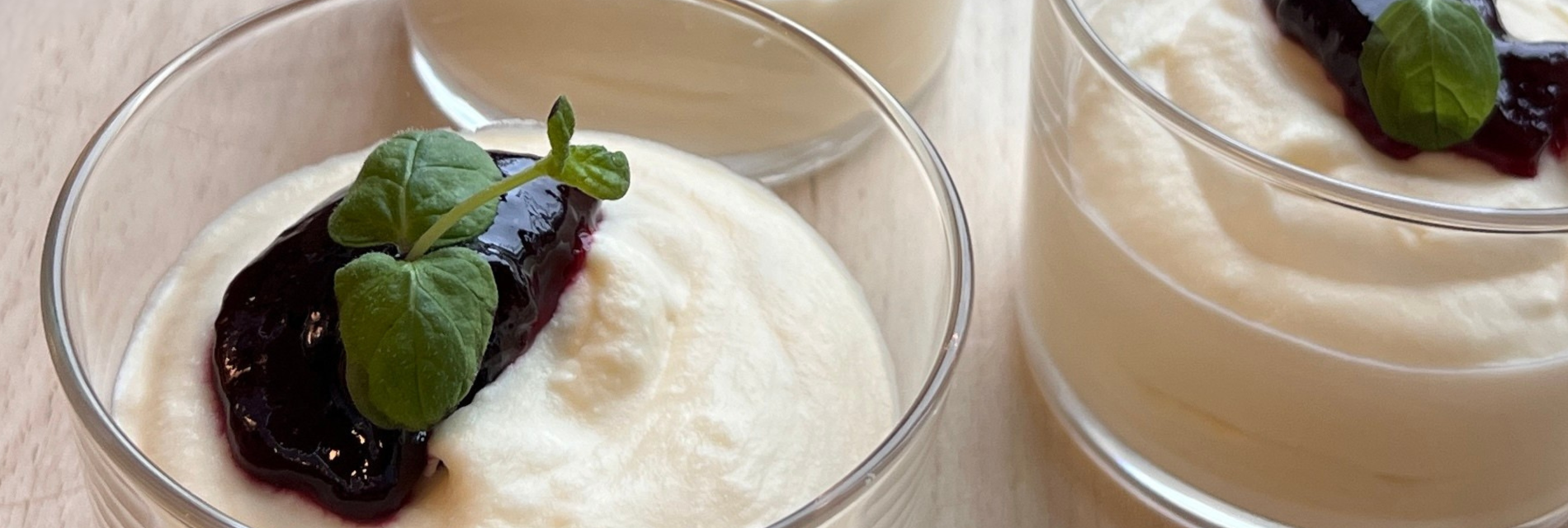 Dessertene leveres i porsjonsskåler, klare for servering. Skålene er av glass.