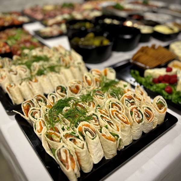 - Lefserull med røkt laks (melk, gluten, fisk)