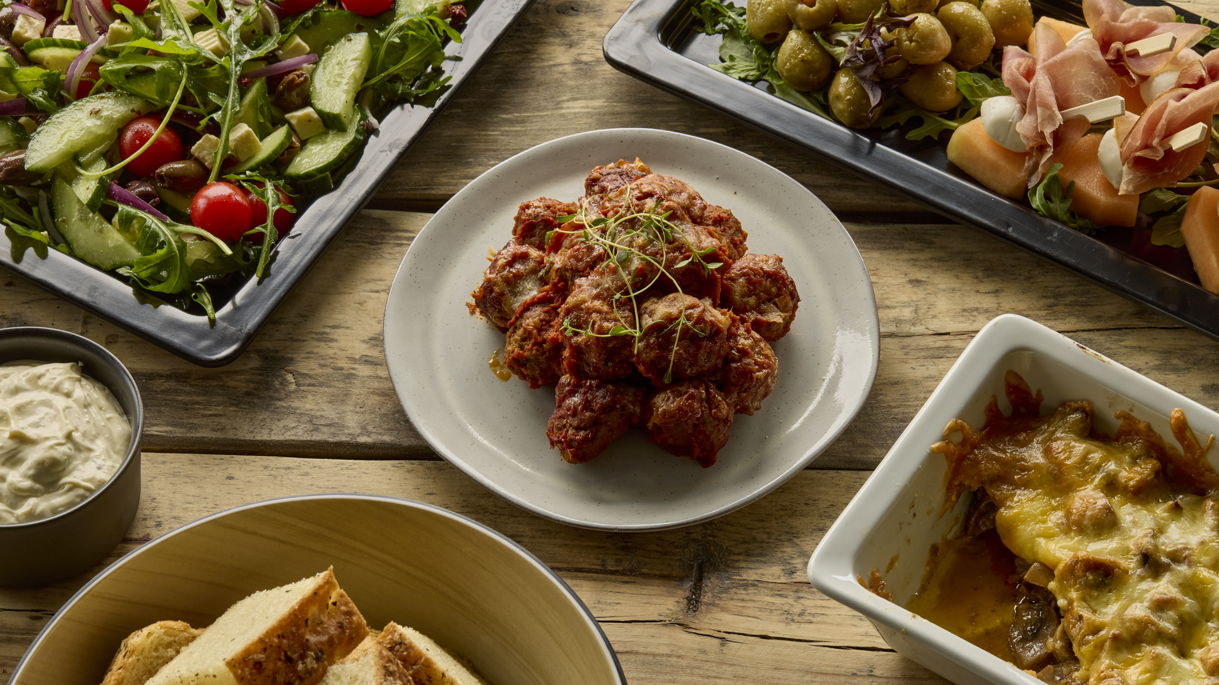 Melk - Husets spanske kjøttboller i en fyldig tomatsaus, gratinert med parmesan